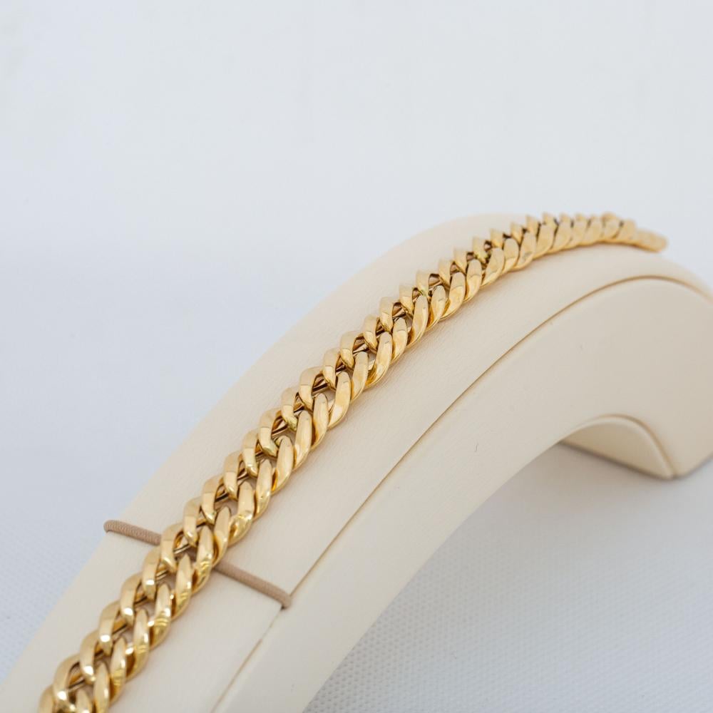 تمتعي بحضور مميز وبإطلالة فاخرة بين الحضور مع اسوارة جنزير ذهب بتصميم ايطالي رائع عيار 18 قيراط، مقدمة من صوغ الذهبية بسعر مميز.