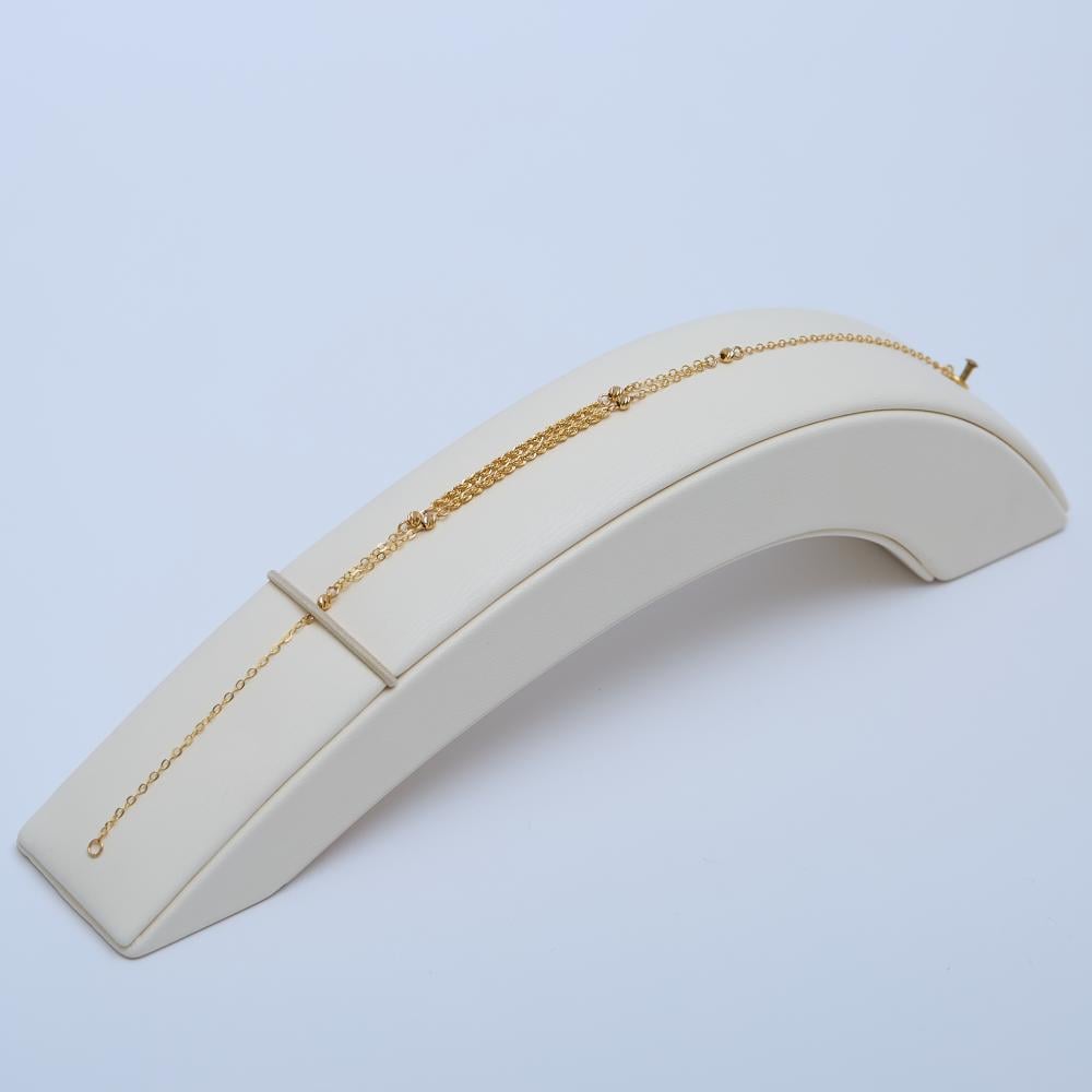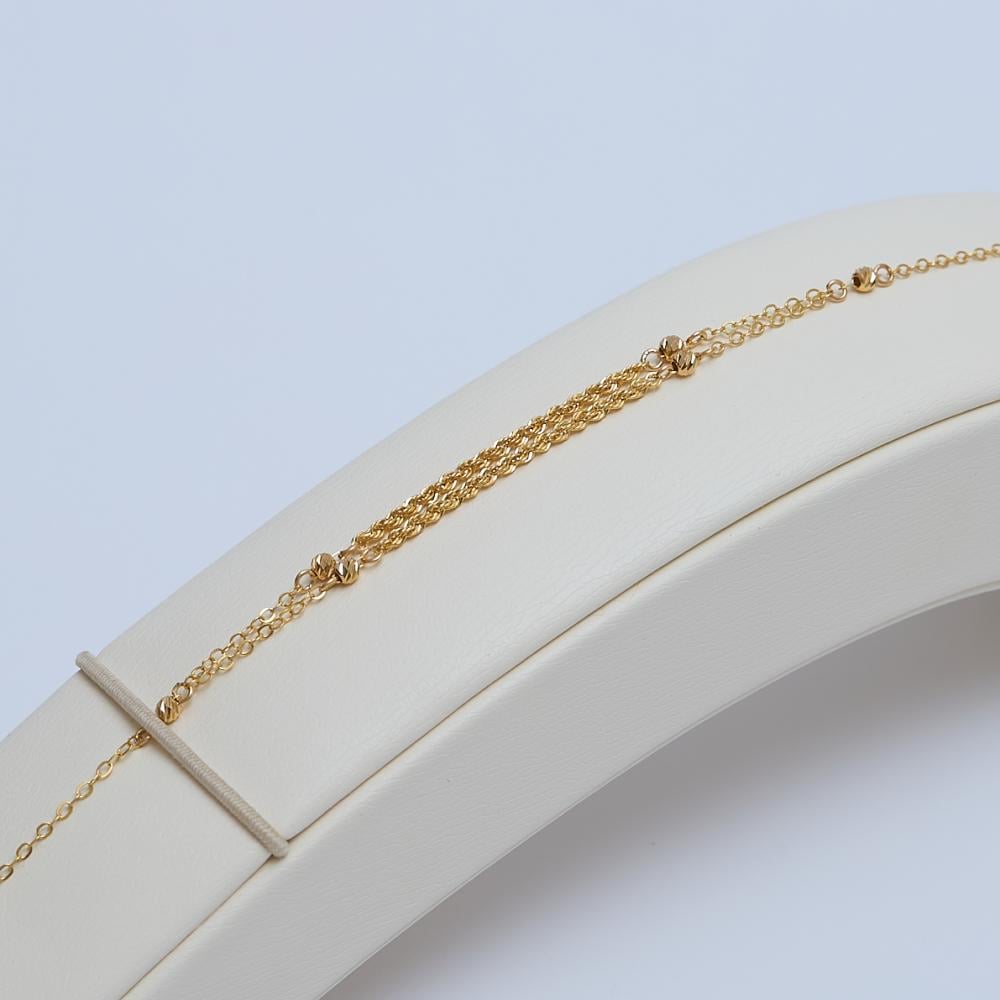 يتميز تصميم هذه الاسوارة المبرومة، بأنها مصنوعة بموديل دورين كما هو موضح بالصورة، حيث تتألف الاسوارة من سلاسل ذهبية ناعمة و سلاسل مبرومة.