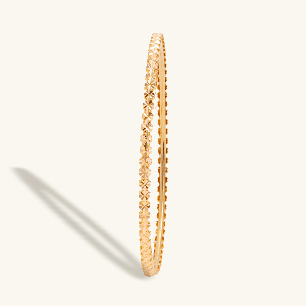 تألقي بأجمل إطلالة عصرية مع بناجر مصنوعة من ذهب عيار 21 قيراط بموديل ناعم ورفيع، تصميم وردة.