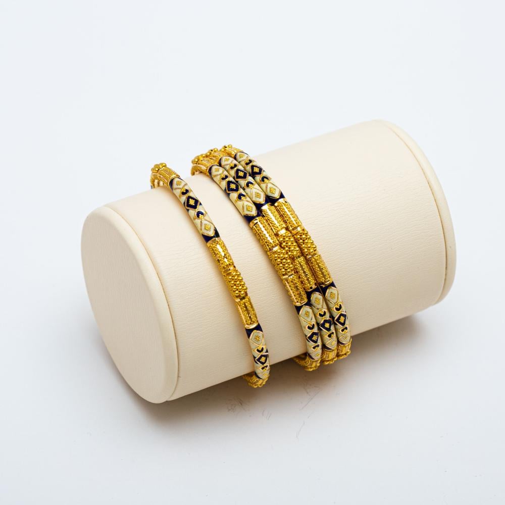 وتأتي هذه البناجر الهندية ملونةً بلوني الأزرق الداكن مع اللون الأبيض، واللذان يضفيان على تصميم الغوايش لمسة ساحرة وأنيقة.