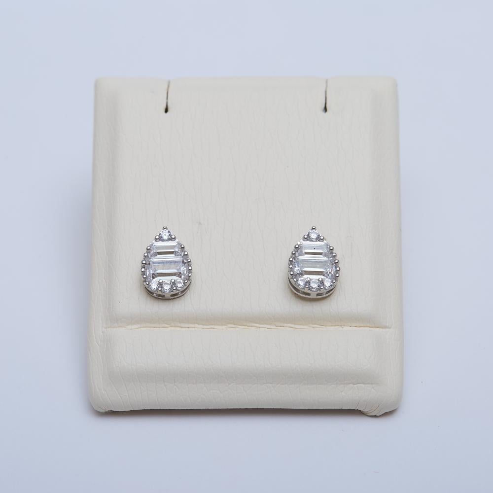 حلق ذهب أبيض صغير موديل دمعة بتصميم ألماس عيار 18 قيراط