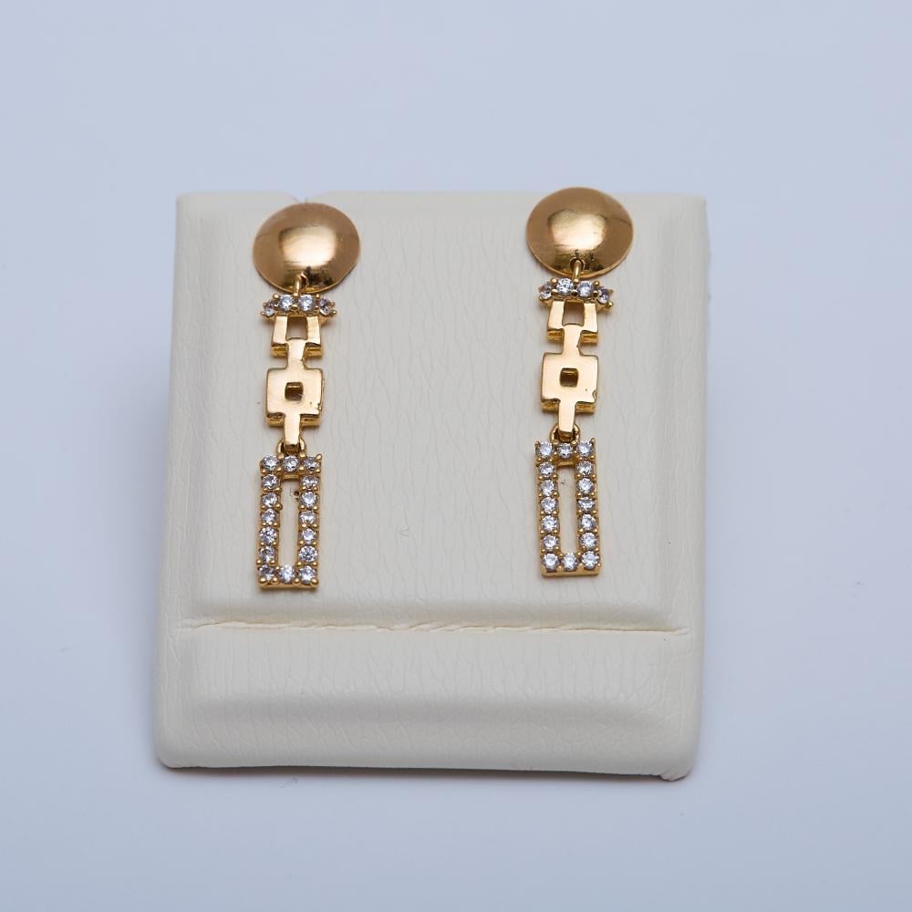 حلق ذهب طويل موديل ألماس عيار 21 قيراط.