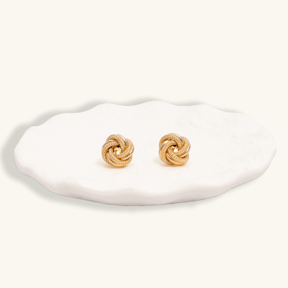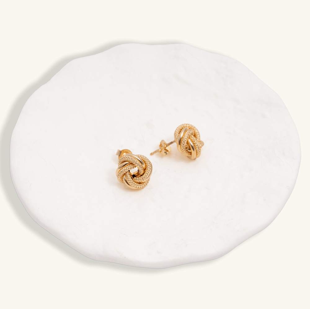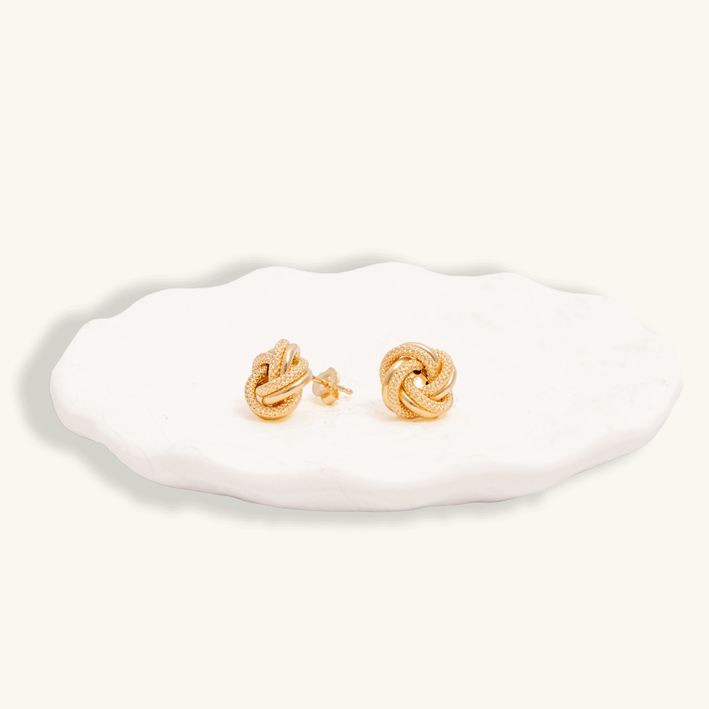 هو زوج من حلق صغير مصنوع بموديل مجدول فخم، يتميز بتفاصيل دقيقة وساحرة تجعل منه قطعة ذهبية لاغنى عنها في أرقى المناسبات الرسمية.