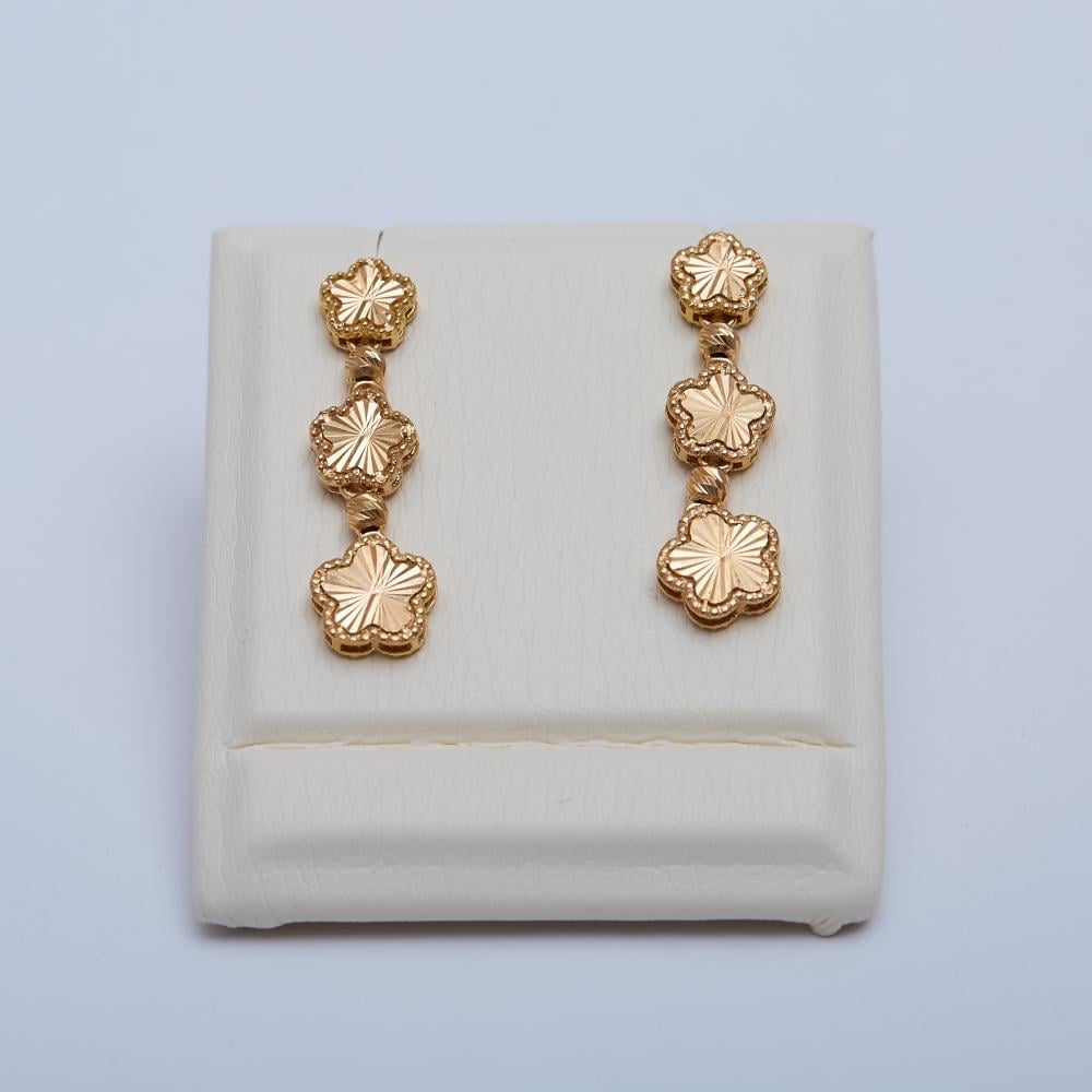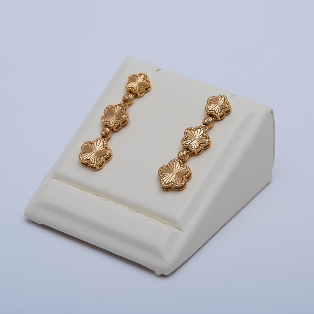 حلق طويل عيار 21 قيراط بتصميم وردة البرسيم
