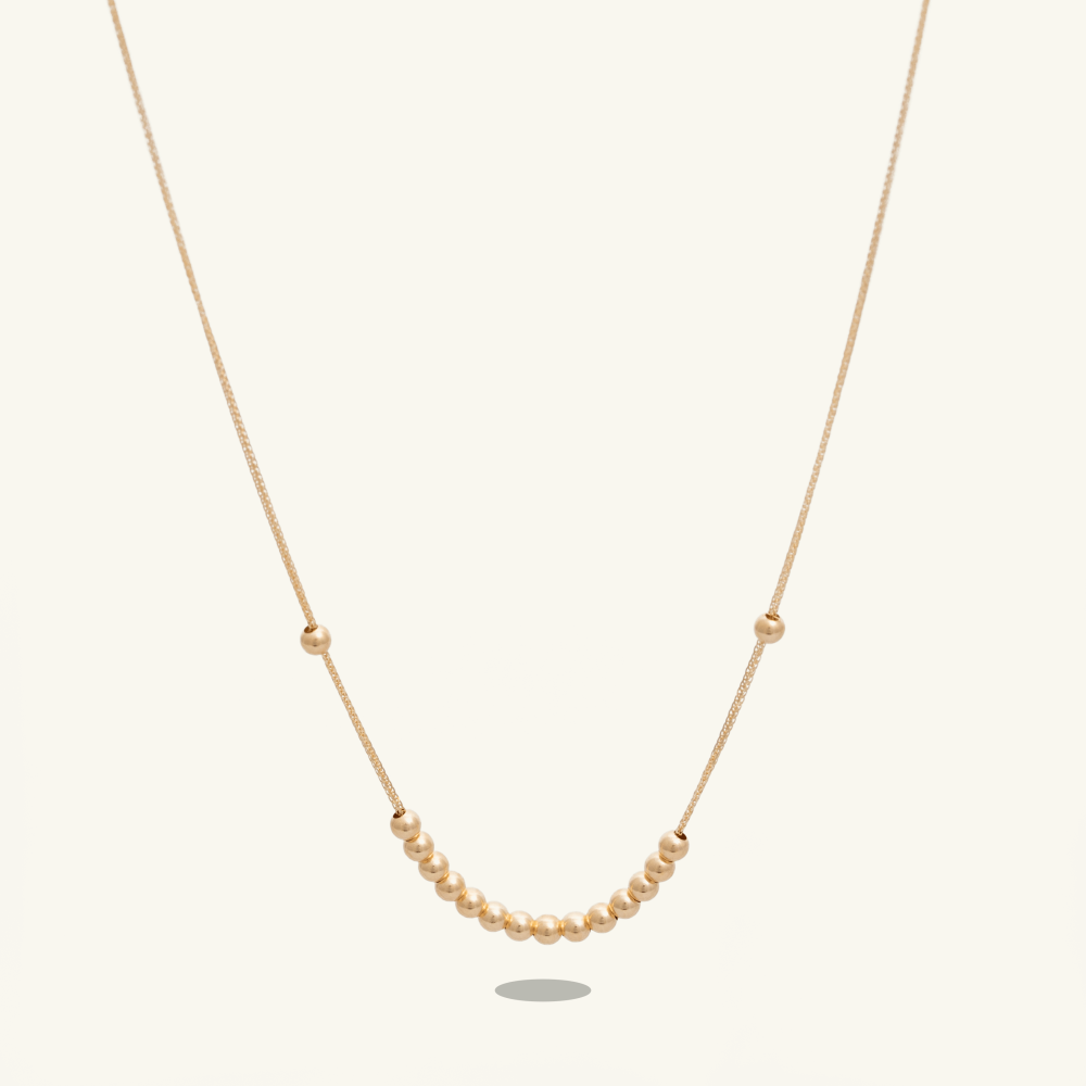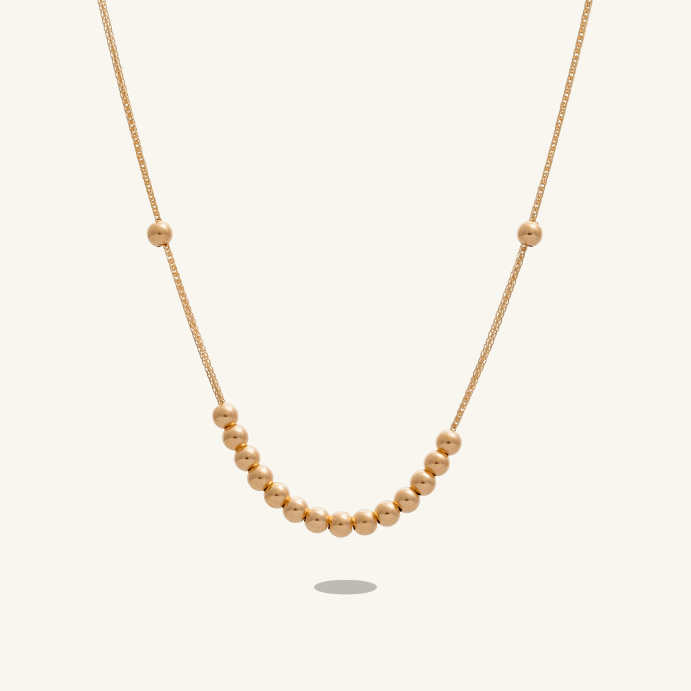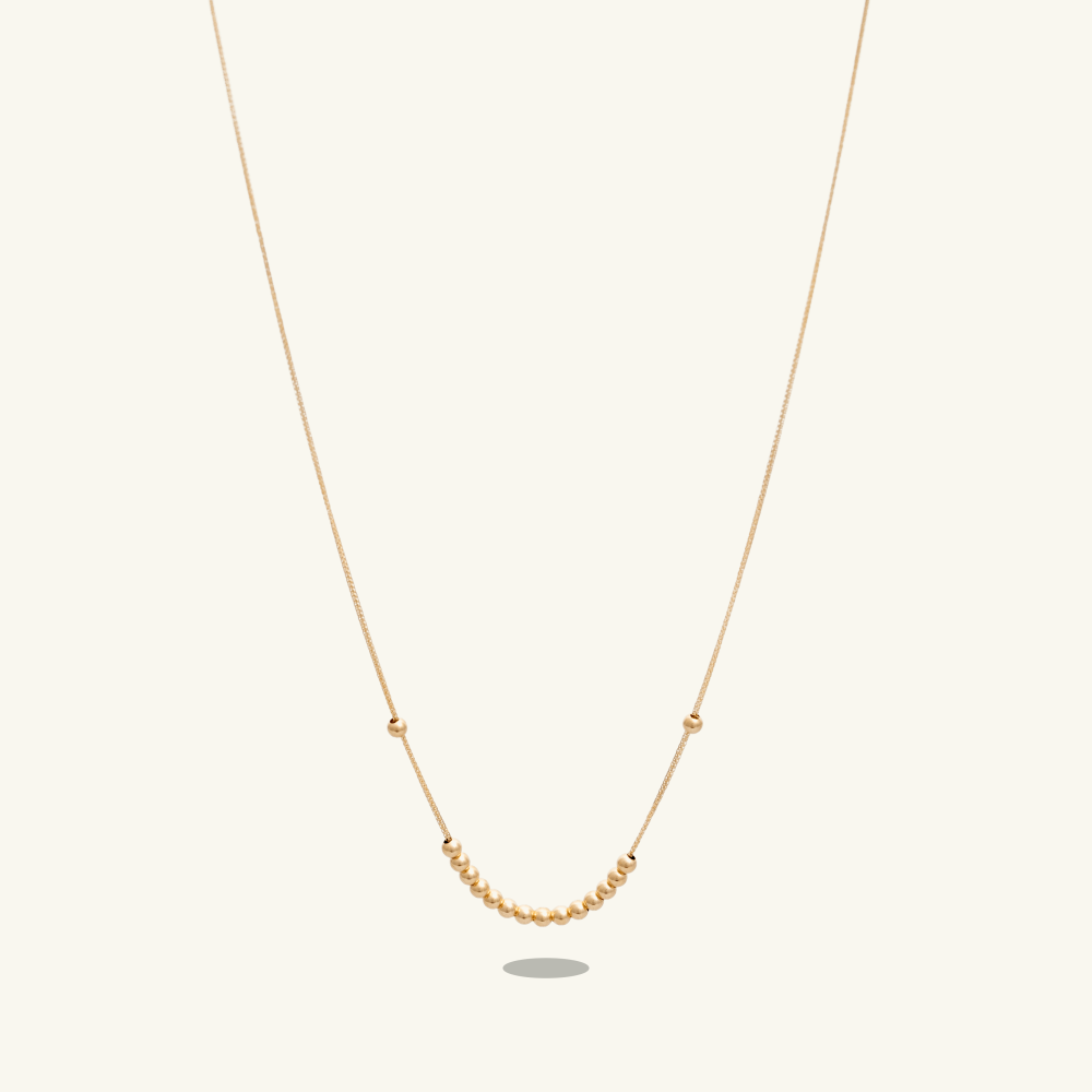 هو عقد ذهب ناعم مصنوع بتصميم إيطالي أنيق، يتكون من سلسلة ذهبية رفيعة تزينها كرات ذهبية صغيرة لتضفي عليها لمسة من الحيوية والأناقة وهو مايعرف بموديل دوريكا.