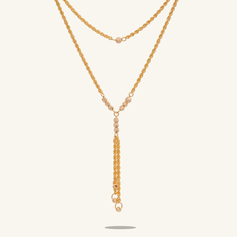 عقد سبحة ذهب مبروم - تعليقة سلسلتين