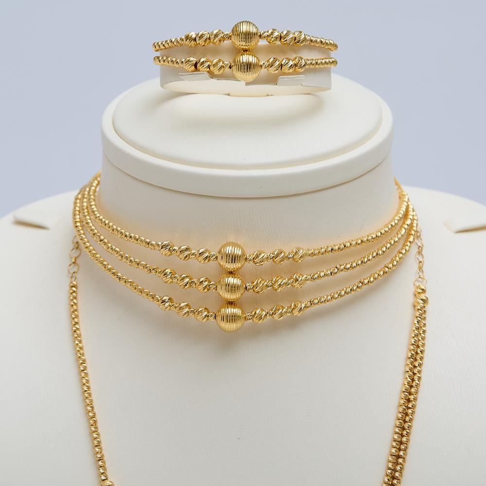 مجوهرات صوغ توفر لك أجمل إطلالة ملكية مع طقم ذهب فاخر تصميم دوريكا عيار 21 قيراط.. اطلبيه الان وكوني متألقة دائماً.