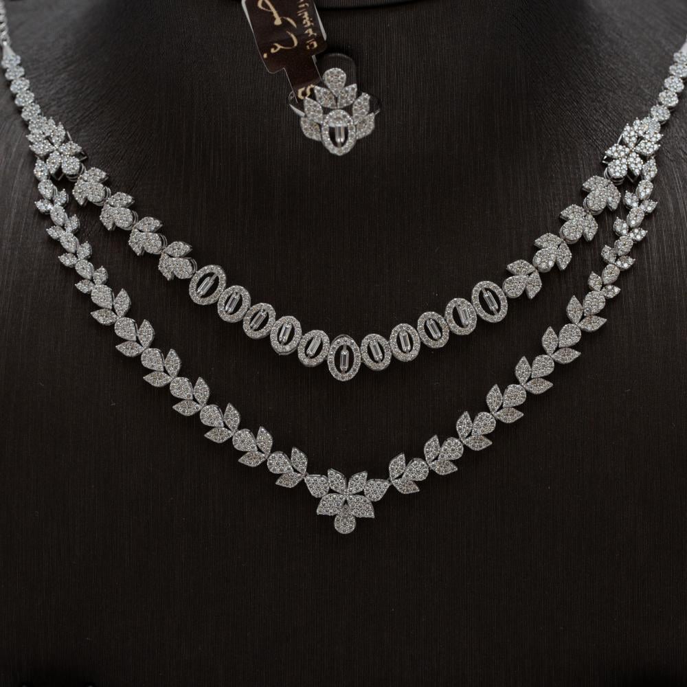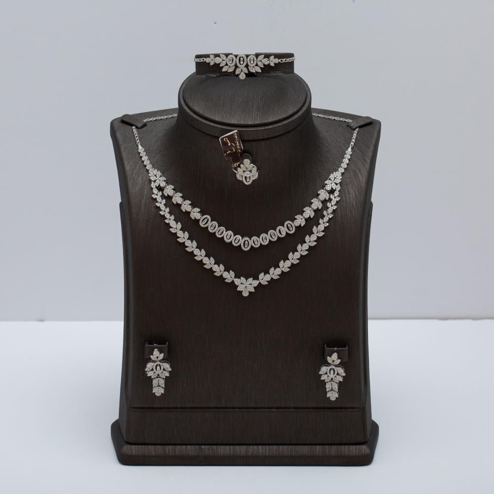 - طقم براق ولامع يجمع بين لمعان الذهب الأبيض وبريق أحجار الزركون.