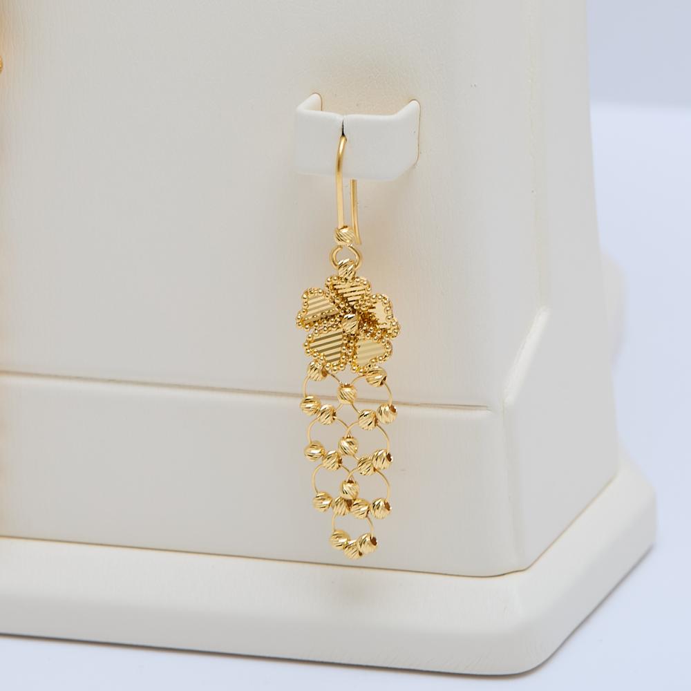 • زوج حلق ذهب طويلة فاخرة تصميم وردة ودوريكا.