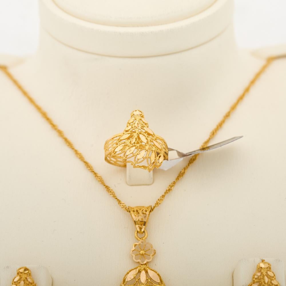 • طقم ذهب متكامل مكون من 4 قطع ذهبية ذات تصميم متناغم