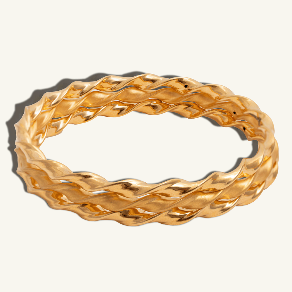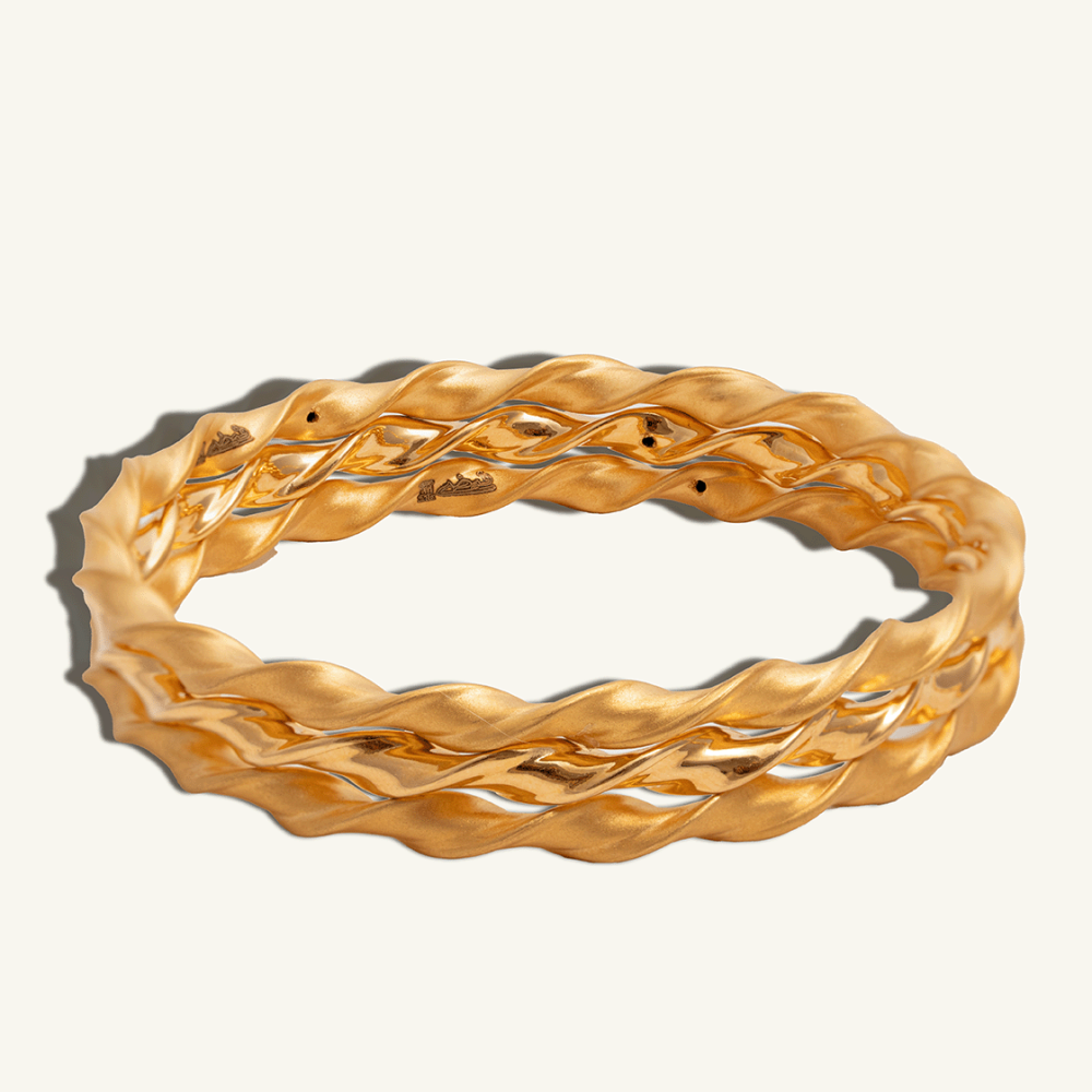 كوني أنيقة ضمن الحضور بارتداء غوايش ذهب موديل مموج عيار 21 قيراط ذات تصميم ناعم.